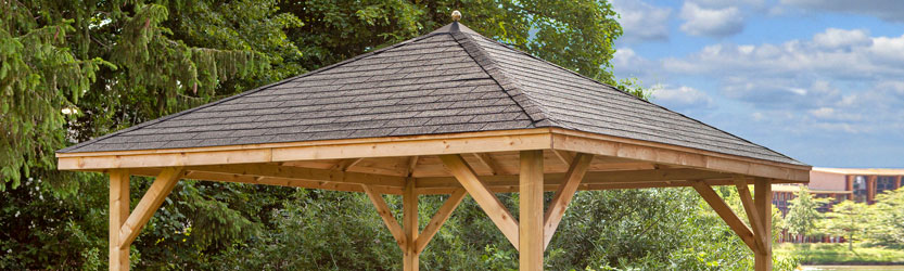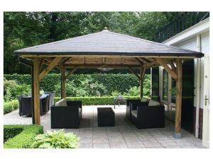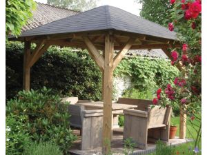 Houten Paviljoen 300x300 cm. Incl. canvas zeildoek.